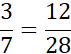 Rozszerz ułamek przez 4, czyli pomnóż licznik i mianownik przez 4. Podpowiedzią może być to, ile razy różnią się od siebie liczniki w obu ułamkach.