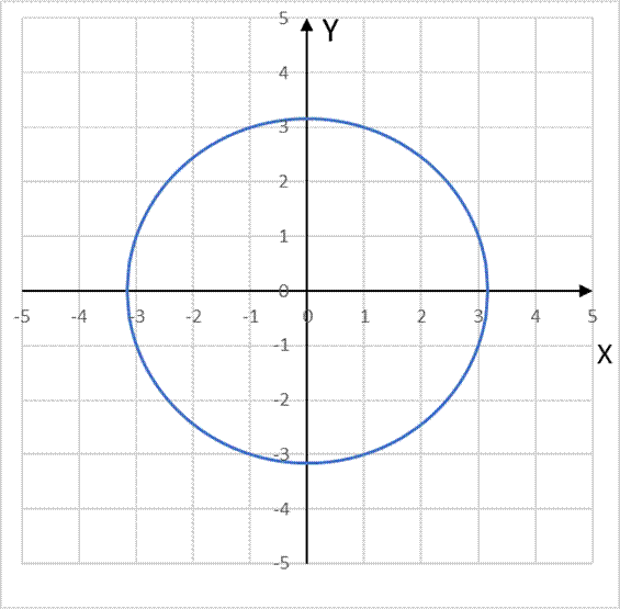 Okrąg, którego środek znajduje się w początku układu współrzędnych i promieniu r > 0 jest zbiorem wszystkich punktów na płaszczyźnie, których współrzędne (x, y) spełniają równanie: