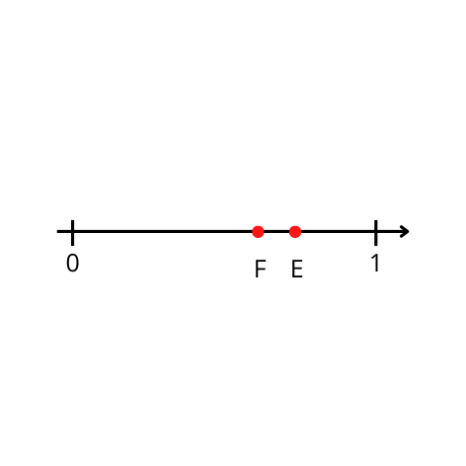 Liczba F jest mniejsza, dlatego leży bliżej 0.