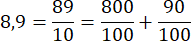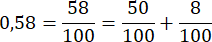 Każdy ułamek dziesiętny można zapisać jako sumę ułamków dziesiętnych. Przecinek zastępuje kreskę ułamkową.