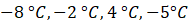 W tym zadaniu musisz wypisać dni, w których Maciek odnotował spadek temperatury. Wiesz, że pierwszego dnia zanotował on temperaturę , a w kolejnych dniach zmiana temperatur wynosiła: .