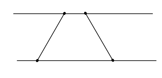 Wyznacz na prostej dowolny odcinek. Następnie wyznacz taki sam odcinek na drugiej prostej. Potem wydłuż/skróć drugi odcinek z obu stron o taką samą długość. W ten sposób otrzymasz podstawy trapezu, które możesz połączyć.