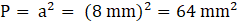 Musisz policzyć pole kwadratu o długości boku 8 mm. Najprostszy wzór to pomnożenie tych cyfr przez siebie.