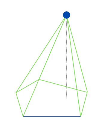 Nie musi być to ostrosłup prawidłowy, dlatego liczy się tylko to, aby zachowany był kształt podstawy – jakikolwiek pięciokąt. Od kropki narysuj prostą prostopadłą do płaszczyzny podstawy ostrosłupa. Następnie dorysuj krawędzie ostrosłupa.