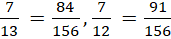 Należy sprowadzić ułamki zwykłe do wspólnego mianownika; możesz tego dokonać szukając NWW liczb z mianowników, NNW liczb 13 i 12 to 156, więc rozszerzamy ułamki tak, by otrzymać 156 w mianowniku (pamiętaj o równoczesnym rozszerzaniu licznika); otrzymujemy
