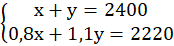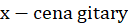 Oznacz cenę gitary jako x oraz cenę wzmacniacza jako y. Następnie utwórz układ równań. W pierwszym równaniu zapisz sumę początkowej ceny gitary oraz wzmacniacza dającą łącznie 2400 zł. W drugim równaniu zapisz sumę obniżonej ceny gitary, czyli 0,8x, oraz podwyższonej ceny wzmacniacza jako 1,1y dającą łącznie 2220 zł.