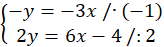 Wykonaj tabelkę, na górze podaj liczbę, którą podstawisz za x, aby wyliczyć y. Dzięki temu wyznaczysz współrzędne punktów, należących do wykresu funkcji liniowej. Zaznacz te punktu i przeprowadź przez nie prostą. Zrób to dla obu prostych. Układ jest sprzeczny, ponieważ proste są równoległe, więc się nie przecinają.