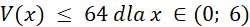 Wiedząc, że z kwadratowego arkusza kartonu o boku 12 dm wycięto w narożnikach kwadraty o bokach x dm, a następnie pozostałą część sklejono i otrzymano otwarte pudełko, a wielomian V zmiennej x opisuje objętość otrzymanego pudełka odczytaj z wykresu obok przybliżone rozwiązanie nierówności