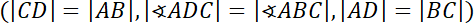 Skorzystaj z tego, że czworokąt ABCD jest równoległobokiem, w którym przeciwległe boki mają taką samą długość, a przeciwległe kąty mają takie same miary.