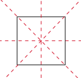 Zauważ, że kwadrat ma cztery osie symetrii, czyli linie, które dzielą figurę na dwie identyczne połowy.