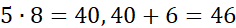 Oblicz podane przykłady i sprawdź: 46:8=… reszta …