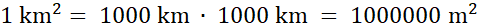 1 km = 1000 m, więc 1 km2 = 1000000 m2.