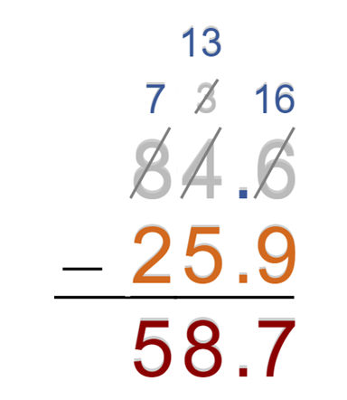 Ułamki dziesiętne odejmuje się pisemnie w podobnie do liczb naturalnych. Odejmuje siebie cyfry w odpowiednich rzędach, czyli całości, części dziesiętne, części setne itd. Pamiętaj, że bardzo ważne jest odpowiednie zapisanie cyfr, oraz przecinka (przecinek pod przecinkiem).