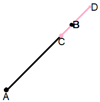 Należy obrać punkt C w dowolnym miejscu na prostej AB oraz poprowadzić odcinek w kierunku punktu B.