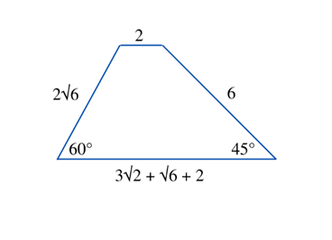 Jest to trapez o różnych bokach, ale wystarczy, że dorysujesz dwie wysokości tej figury. Powstaną dwa trójkąty – jeden, którego kąty to 30°, 60°, 90°, a drugi – 45°, 45°, 90°. Pamiętaj, że najkrótszy bok w trójkącie 30°, 60°, 90° ma długość a, najdłuższy 2a, a średni -