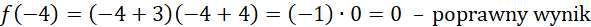 Liczby –3 oraz –4 są pierwiastkiem tego równania.