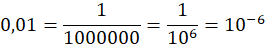 Zapisz liczbę 0,000 001 w postaci potęgi liczby 10.