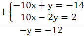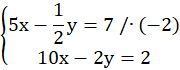 Pomnóż pierwsze równanie przez (-2), aby otrzymać przy niewiadomej x liczby przeciwne, a następnie dodaj do siebie równania.