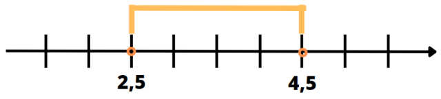 W tym zadaniu musisz zaznaczyć na osi przedział (2,5;4,5).