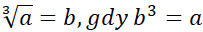 Pierwiastek sześcienny z liczby a to taka liczba b, że: