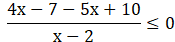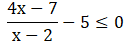 Określamy dziedzinę wyrażenia, wiedząc, że mianownik ma być niezerowy. Przerzucamy wszystkie wyrazy na jedną stronę nierówności i wprowadzamy na wspólną kreskę ułamkową. Dla dowolnych liczb rzeczywistych znak ilorazu jest taki sam jak znak iloczynu, więc rozpatrujemy wielomian będący iloczynem licznika i mianownika. Obliczamy jego miejsca zerowe i rozwiązujemy nierówność dla funkcji homograficznej.