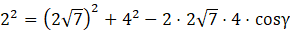 Dla dowolnego trójkąta kwadrat jednego z boków jest równy sumie kwadratów dwóch pozostałych odjąć podwojony iloczyn długości tych boków oraz cosinusa kąta między nimi.