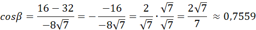 Skorzystaj z twierdzenia cosinusów: