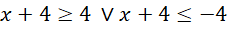 Wyznacz wszystkie liczby, których odległość od (-4) na osi liczbowej jest większa lub równa 4. Zauważ, że rozwiązaniem nierówności