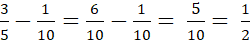 Musisz sprowadzić ułamki do mianownika 10 i wykonać odejmowanie.