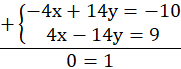 Obie niewiadome się redukują, co oznacza, że układ równań jest sprzecznym, ponieważ żadna para liczb nie spełnia danego układu.