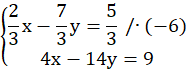 Pomnóż pierwsze równanie przez (-6), aby otrzymać przy niewiadomej x liczby przeciwne, a następnie dodaj do siebie równania.