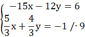 Pomnóż pierwsze równanie przez (-6), aby otrzymać przy niewiadomej x liczby przeciwne, a następnie dodaj do siebie równania.