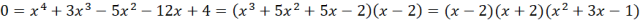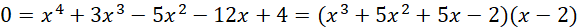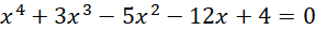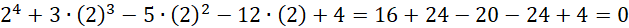 Znajdź pierwiastek całkowity wśród dzielników wyrazu wolnego tj. -4, -2, -1, 1, 2, 4.