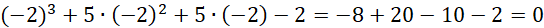 Znajdź pierwiastek całkowity wśród dzielników wyrazu wolnego tj. -2,-1, 1, 2.