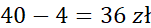 Uzupełnij, ile pieniędzy jest w poszczególnych przedmiotach, jeśli do koperty włożono 40 zł, do portmonetki o 4 zł mniej, a dodatkowo w portmonetce jest 3 razy więcej pieniędzy niż w skarbonce i 2 razy mniej pieniędzy niż w skarpecie.