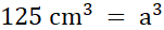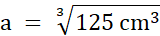 Dla V = 125 cm3 należy przeliczyć, ile będzie mieć bok, żeby objętość wynosiła 125 cm3