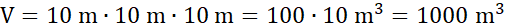 Dla V = 100 m3 należy przeliczyć, ile będzie mieć bok, żeby objętość wynosiła 1000 m3