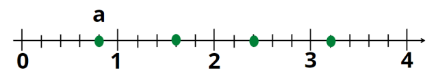 Zaznacz punkt a, a następnie odmierz z prawej strony ten sam odcinek, co odległość od 0 do a. Na końcu tego odcinka będzie liczba 2 razy większa. Odmierz ten odcinek jeszcze 2 razy: w odpowiednich punktach znajdziesz liczbę 3 i 4 razy większą do a.
