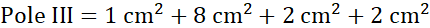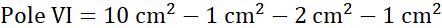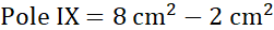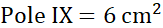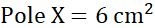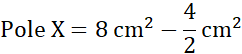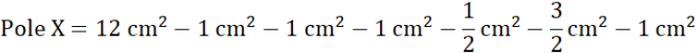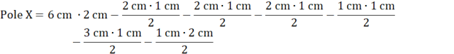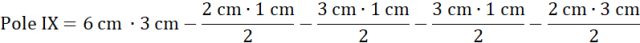 Pole X składa się z prostokąta o wymiarach 2 cm na 6 cm i wyciętych z niego sześciu trójkątów – 4 z nich są prostokątne.