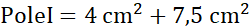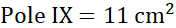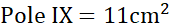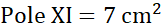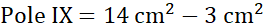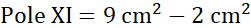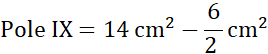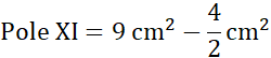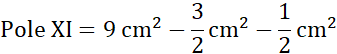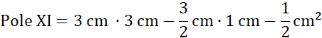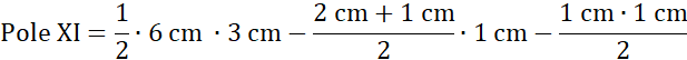 Pole XI składa się z trójkąta o boku 6 cm i wysokości 3 cm oraz z wyciętych z niego trapezu prostokątnego i trójkąta prostokątnego.