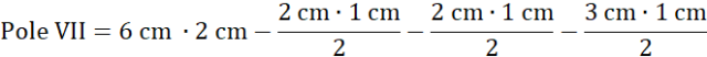 Figura VII jest prostokątem o wymiarach 6 cm na 2 cm z wyciętymi trzema trójkątami, w tym dwoma trójkątami prostokątnymi.
