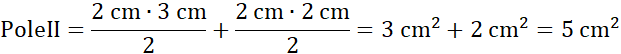 Figura II składa się z dwóch trójkątów: jeden o podstawie 2 cm i wysokości 3 cm, a drugi o podstawie 2 cm i wysokości 2 cm.