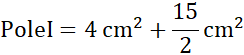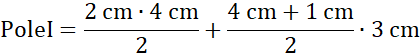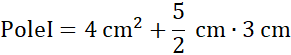 Figura I składa się z lewego trójkąta prostokątnego o przyprostokątnych 2 cm i 4 cm i trapezu równoramiennego o podstawach 4 cm i 1 cm oraz wysokości 3 cm.