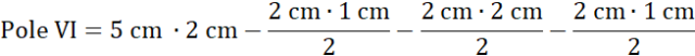 Figura VI jest prostokątem 5 cm na 2 cm z wyciętymi trzema trójkątami.