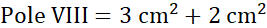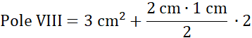 Figura VIII składa się z trzech kwadracików o polu 1 cm2 i dwóch trójkątów prostokątnych o wymiarach 1 cm na 2 cm.