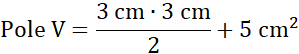 Figura V składa się z trójkąta o boku 3 cm i wysokości 3 cm i pięciu kwadracików o polu 1 cm2.