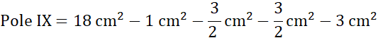 Figura IX składa się z prostokąta 3 cm na 6 cm z wyciętymi po jego rogach trójkątami prostokątnymi.