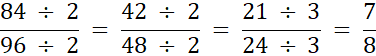 Znajdź największy wspólny dzielnik, skróć ułamki do ułamków nieskracalnych.