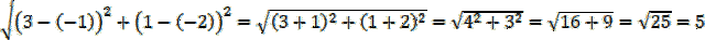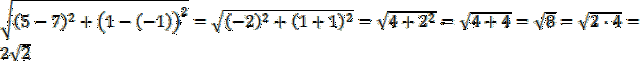W celu obliczenia odległości między punktami A(xa, ya) i B(xb, yb) skorzystaj z następującego wzoru: |AB| =