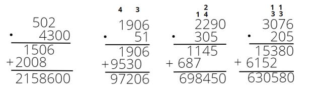 Wykonując mnożenie pisemne przez liczby wielocyfrowe, musisz pomnożyć każdą cyfrę dolnej liczby przez każdą cyfrę górnej liczby, rozpoczynając od rzędu jedności. Wynik mnożenia dla każdej cyfry zapisuj w osobnej linii zaczynając od kolumny w której stoi cyfra, przez którą właśnie mnożysz. Na koniec zapisane liczby należy ze sobą dodać, pamiętaj o tym, aby obliczać sumy cyfr rzędami, zaczynając od rzędu jedności.